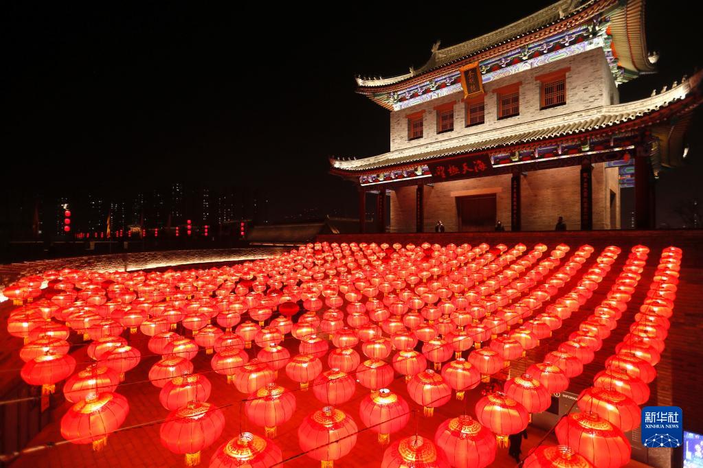 隨著春節臨近,山東即墨古城張燈結彩,洋溢著喜慶的年味。