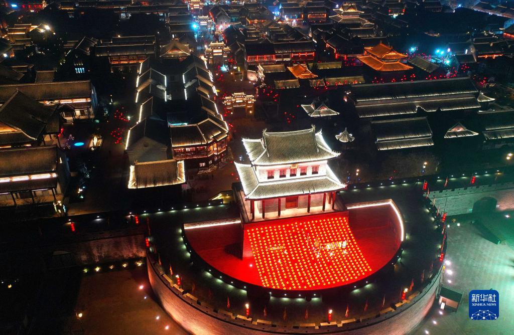 隨著春節臨近,山東即墨古城張燈結彩,洋溢著喜慶的年味。