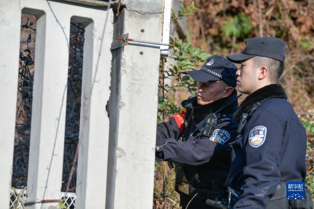 1月8日,鐵路警察王云(左)和謝源在鐵路沿線進行鐵路附屬設施安全巡查。