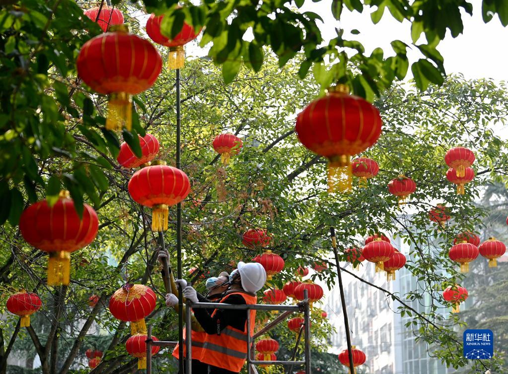 春節臨近,年味漸濃。多地大街小巷的紅燈籠高高掛起,洋溢著喜慶的節日氛圍。新華社發(劉永紅 攝)