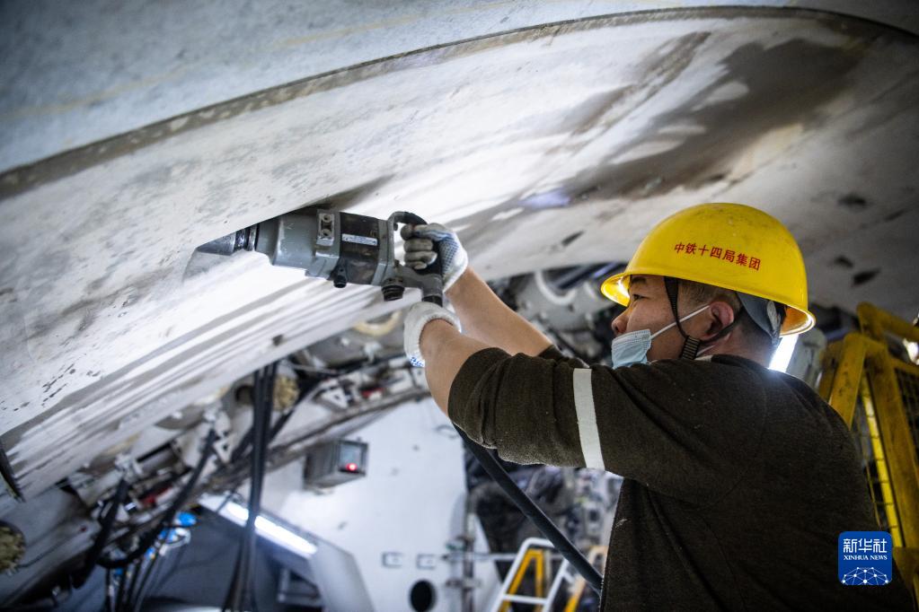 近日,武漢和平大道南延工程隧道盾構工作進入收尾階段。據悉,南延工程項目通過武昌古城,下穿蛇山,全長3042.5米,是貫通武昌順江通道的控制性工程。項目隧道盾構段采用單管雙層方案,雙向6車道,設計時速50公里。新華社記者 伍志尊 攝