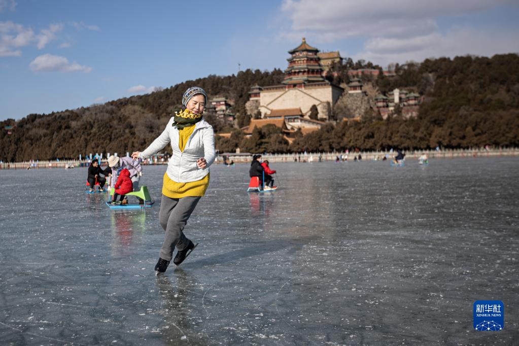 2022年1月10日,67歲的曲薇在北京頤和園冰場上滑冰。