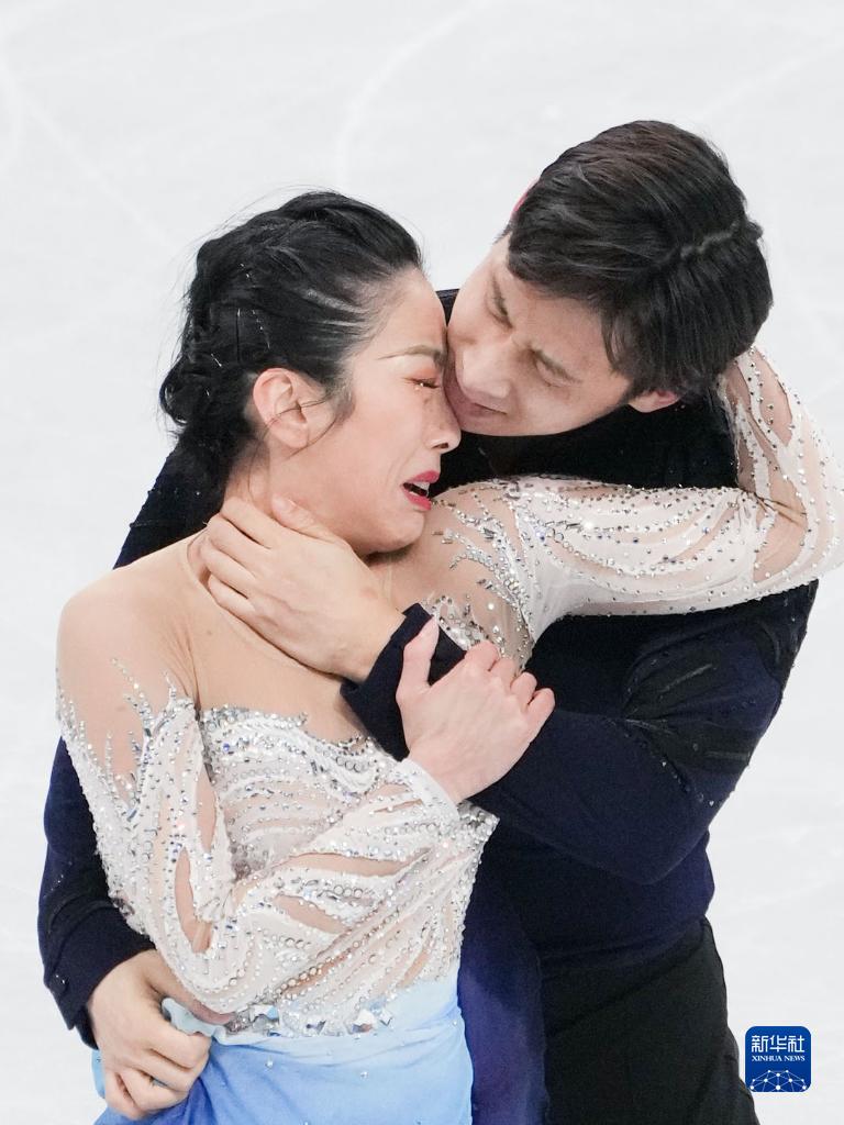 2022年2月19日,隋文靜(左)/韓聰在比賽后。