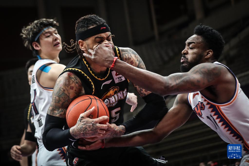 2022年3月18日,遼寧本鋼隊球員莫蘭德(中)突破上海久事隊球員富蘭克林防守。