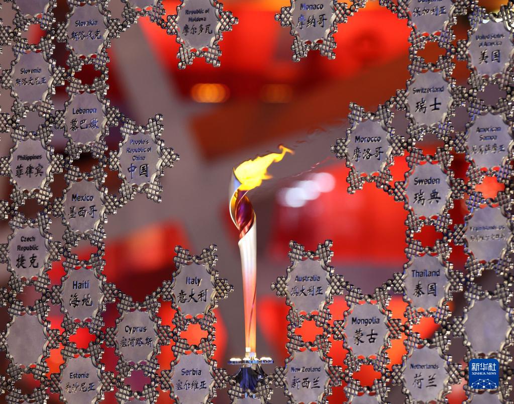 這是位于國家體育場外的北京冬奧會火炬臺。