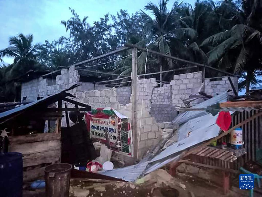 這是1月10日在印度尼西亞馬魯古省拍攝的在地震中受損的房屋。