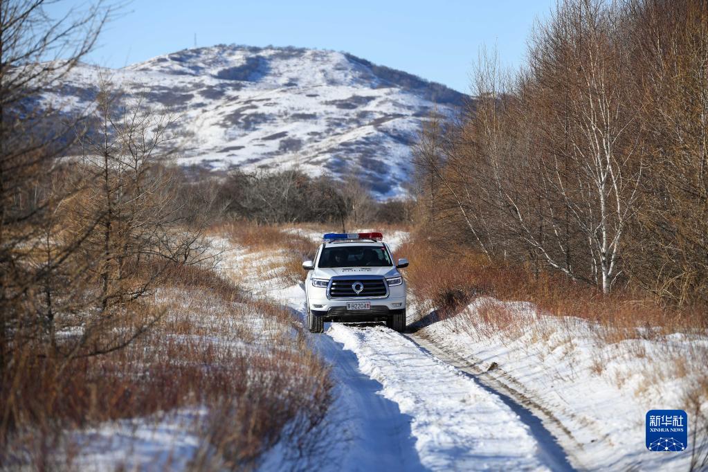 1月9日,西烏珠穆沁旗公安局古日格斯臺國家級自然保護區迪彥派出所民警駕駛警車在林區巡邏。