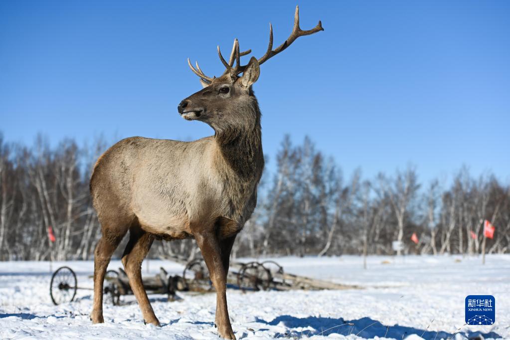 這是在古日格斯臺國家級自然保護區拍攝的被救助的馬鹿(1月9日攝)。