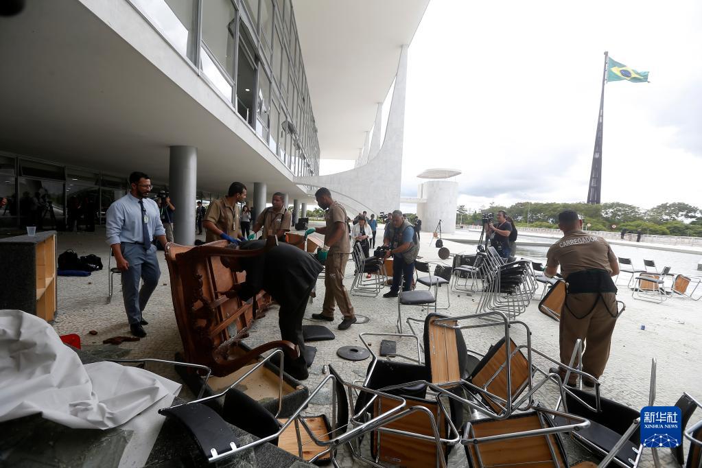 1月9日,在巴西首都巴西利亞,工作人員清理總統府普拉納爾托宮遭到破壞的家具。
