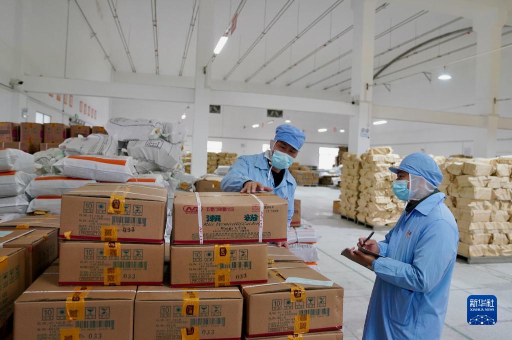 1月10日,會昌縣五豐食品有限公司的工作人員在車間登記米粉的入庫數量。