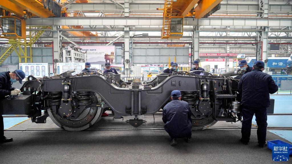 1月9日,在成都機務段和諧型大功率機車檢修基地,檢修班組對轉向架各部件進行檢查和維修。