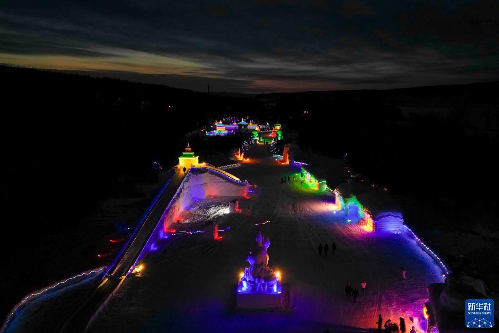 這是1月7日拍攝的漠河市北極村冰雪童話世界夜景(無人機照片)。