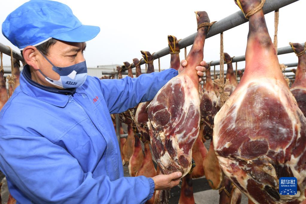 新春佳節臨近,浙江省金華市的火腿生產企業進入火腿加工、曬制高峰期,眾多火腿在曬場沐浴日光,形成一道獨特的風景。