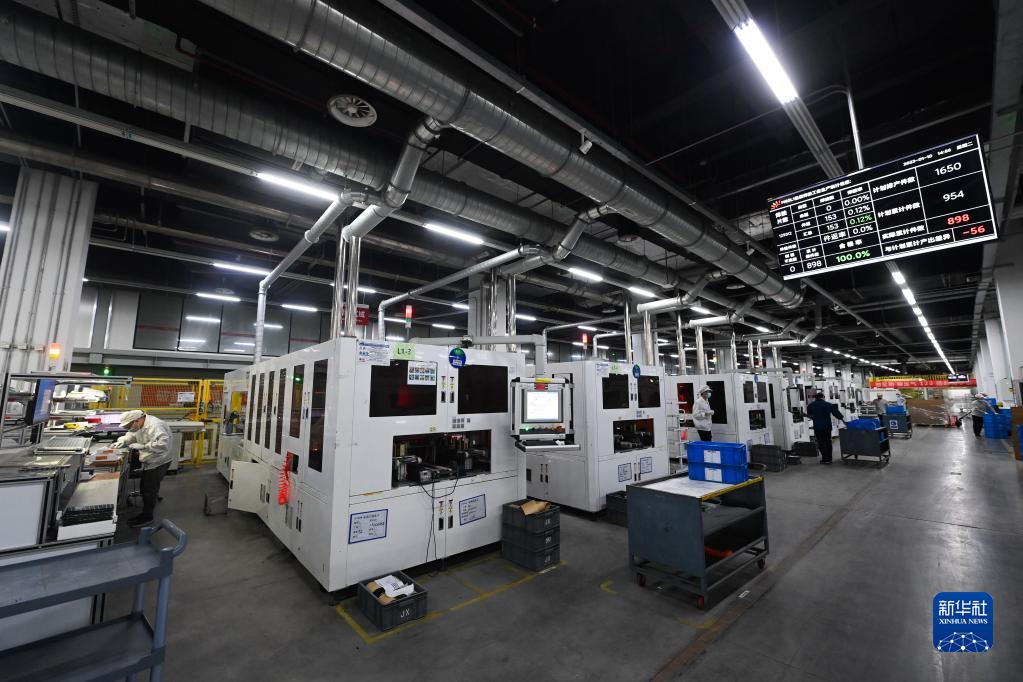1月10日,在位于嘉興秀洲光伏小鎮內的一家科技有限公司,自動化流水線在生產光伏設備組件。