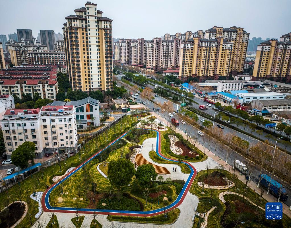 1月10日拍攝的合肥市瑤海區的一處新建街頭游園(無人機照片)。