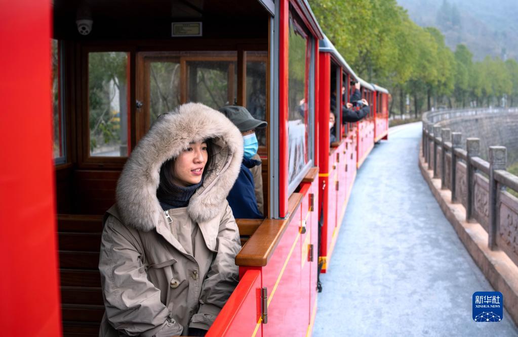 1月10日,人們在宣恩縣城區乘坐“小火車”。
