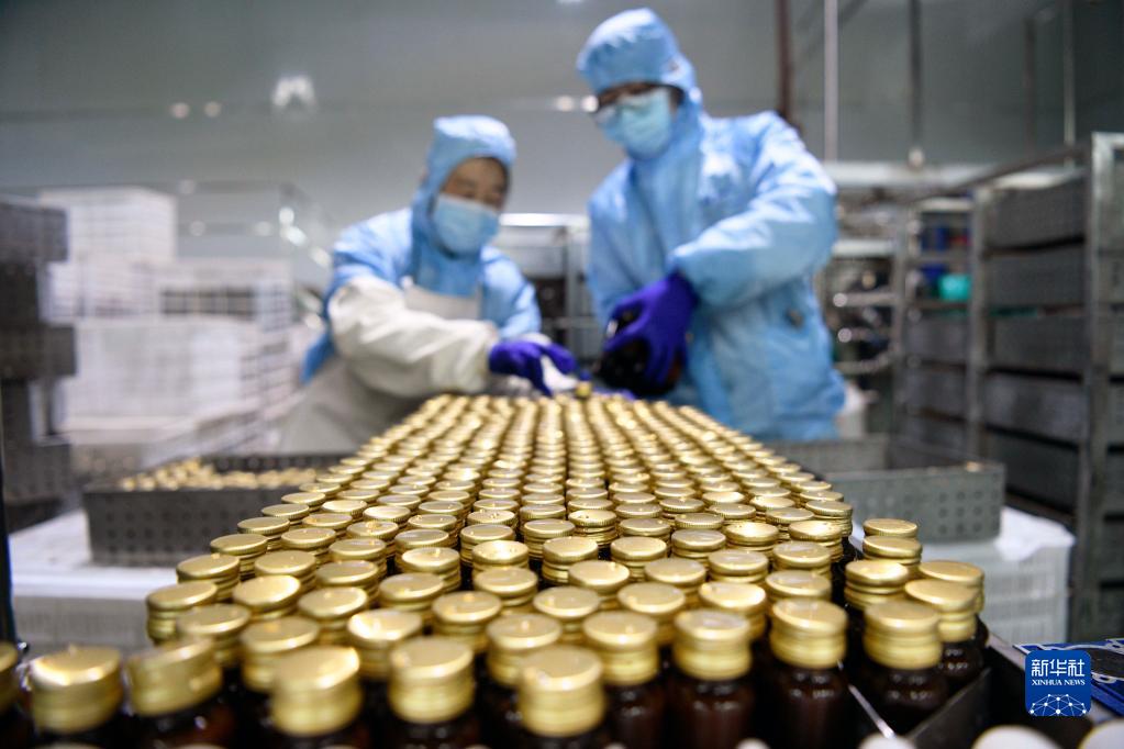 1月10日,工人在圍場縣一家沙棘深加工企業的沙棘飲品生產線上忙碌。
