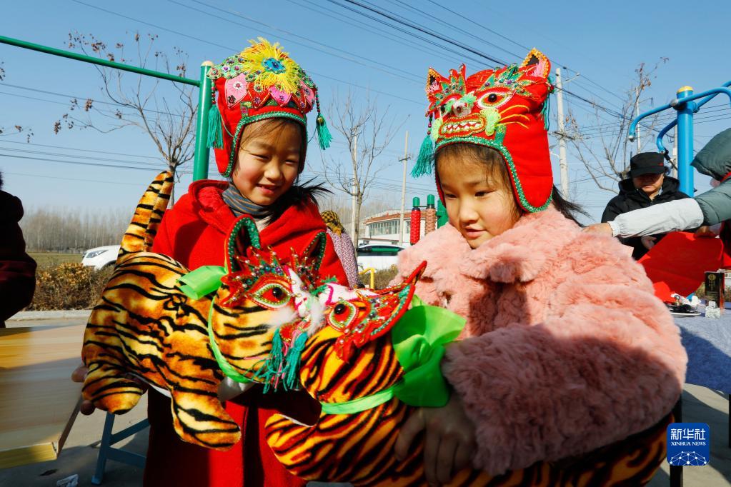 1月10號,在羊流鎮大洼村,小朋友對“布老虎”愛不釋手。