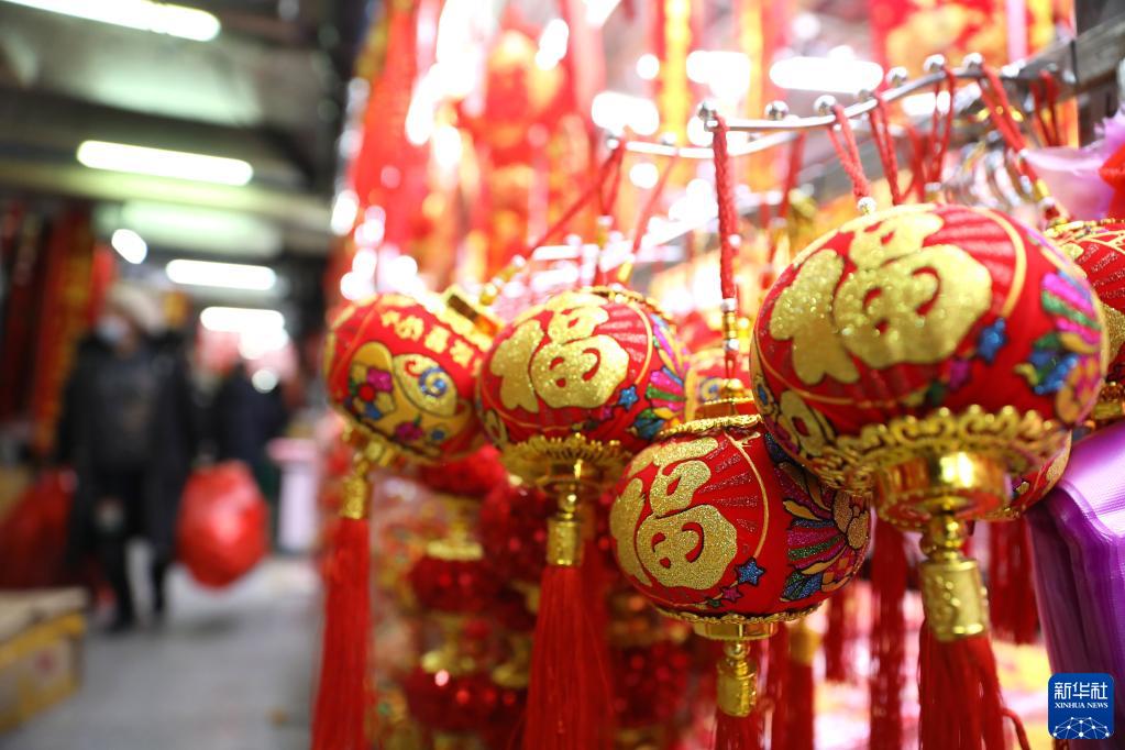 這是遼寧沈陽五愛國際小商品城一家店鋪展售的春節飾品(1月11日攝)。