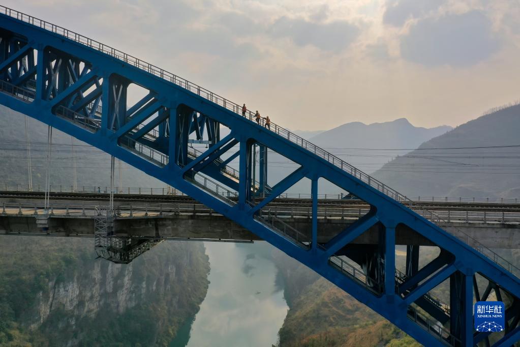 成貴高鐵鴨池河特大橋橫跨貴州省黔西市境內的鴨池河,在地勢險峻的峽谷間,每天約有100多組春運動車穿行經過。在最高處距離河面約277米的大橋上,鐵路職工堅守崗位,嚴格巡檢,對大橋的鋼結構、供電設備、橋梁支座、外包混凝土等進行細致檢查,根據列車運行情況調整軌道線路的幾何尺寸、進行鋼軌探傷等作業,全力保障春運期間動車組安全通過。