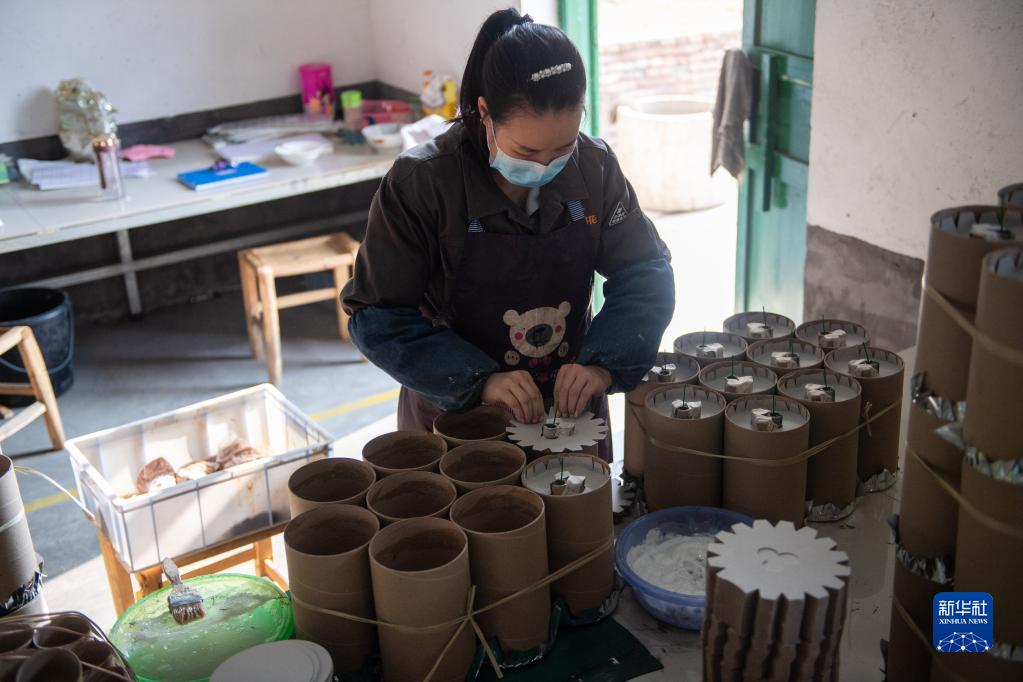 1月11日,在瀏陽市大瑤鎮一花炮車間,工作人員在制作花炮。