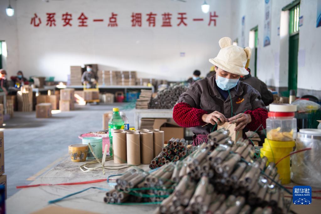 春節臨近,位于湖南省瀏陽市的“煙花小鎮”大瑤鎮進入一年中最忙碌的時期?;ㄅ谄髽I在保證安全生產的前提下,加緊生產,滿足市場需求。