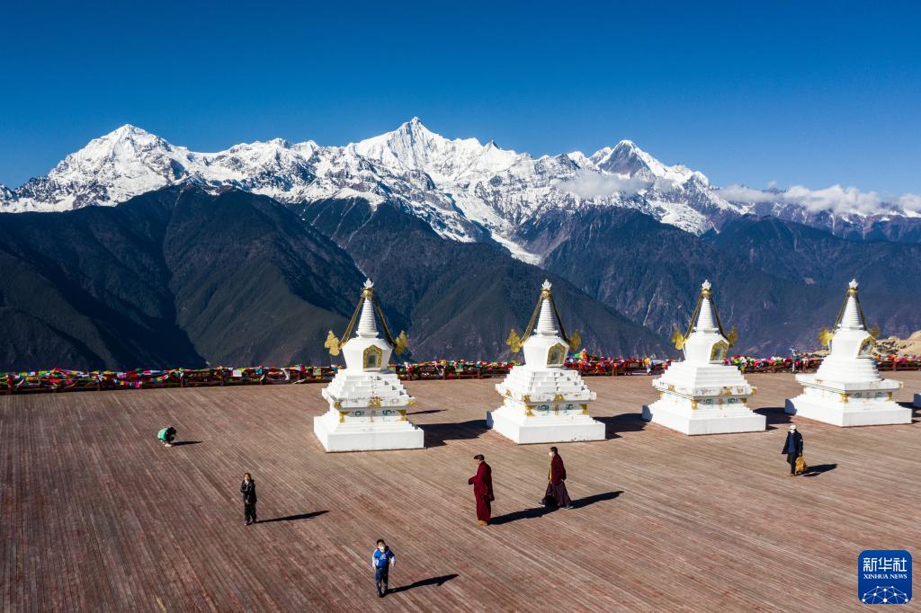 1月11日拍攝的梅里雪山一景(無人機照片)。