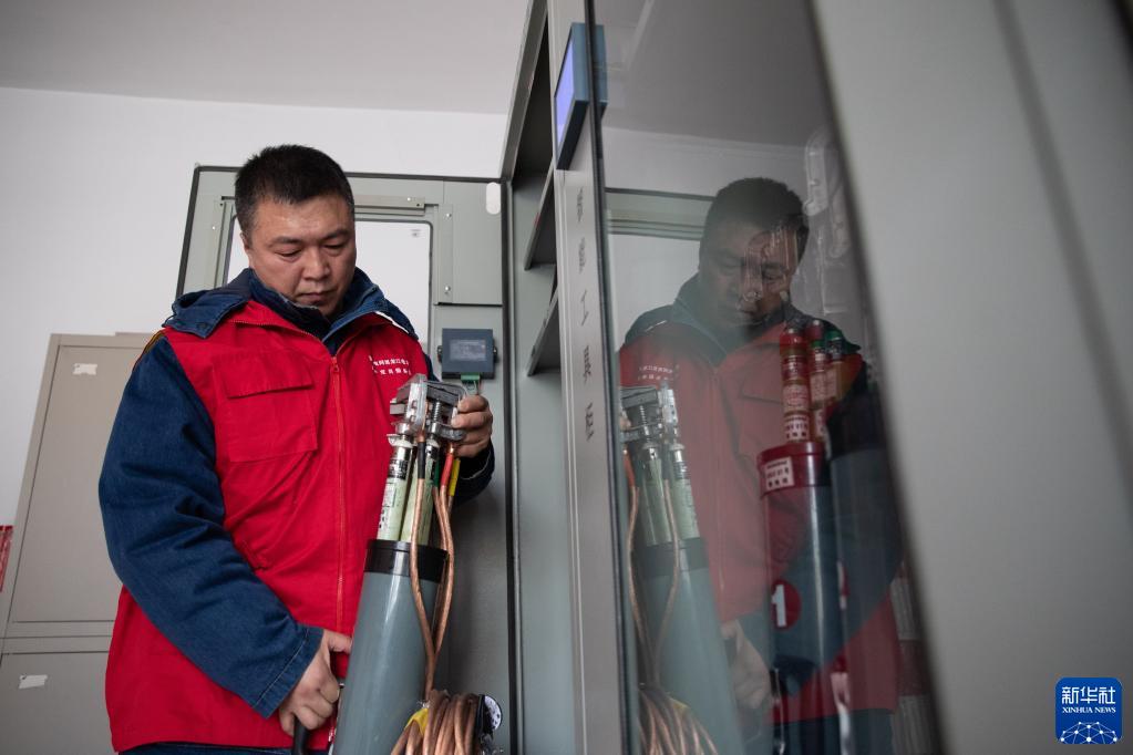 1月9日,在北極村供電所設備間內,線路設備運維人員馬國軍在檢查設備。新華社記者 張濤 攝