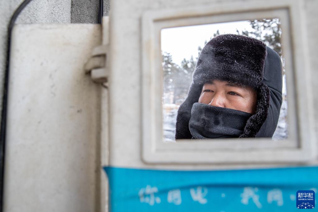 1月9日,在漠河市北極村,線路設備運維人員馬國軍在檢查供電設備。新華社記者 張濤 攝