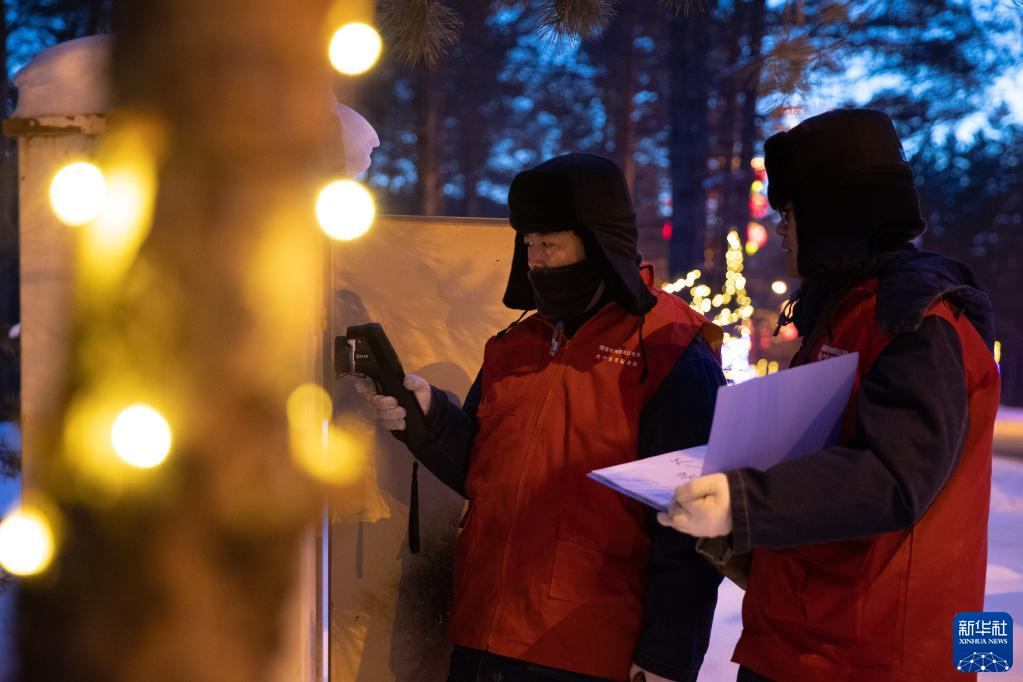 1月9日,在漠河市北極村,線路設備運維人員馬國軍在檢查設備情況。新華社記者 張濤 攝