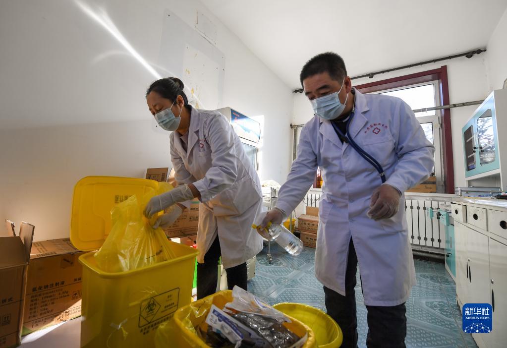 1月7日,姚春明和妻子陳麗華在巴彥高勒衛生院內處理醫廢垃圾。