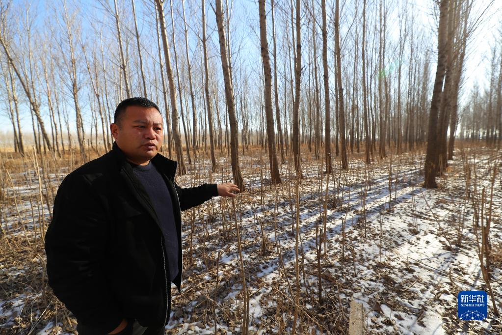1月9日,在新民市市郊,農民將刺嫩芽樹栽種在林下。