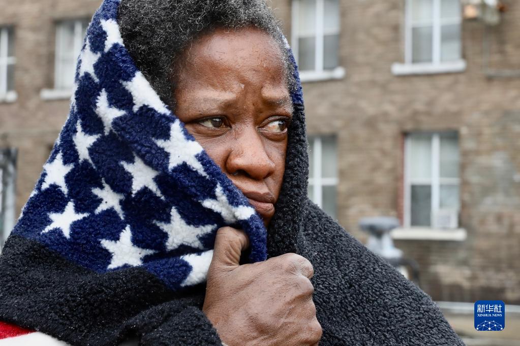 1月10日,一名女性無家可歸者冒雨走在美國洛杉磯市中心第六街街頭。該區域是美國加利福尼亞州洛杉磯地區無家可歸者最集中的區域之一。
