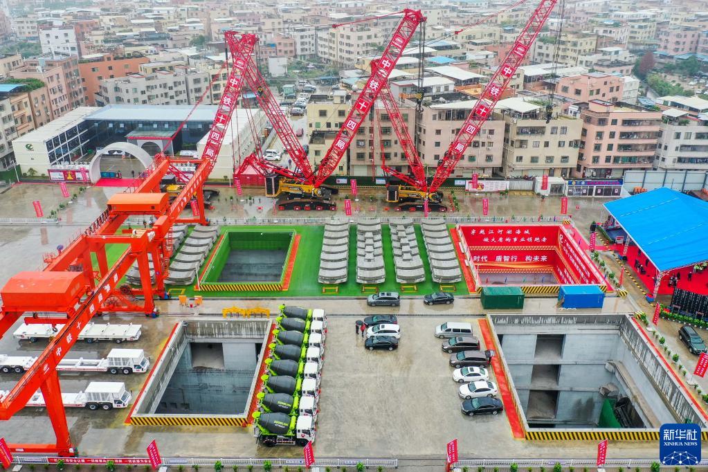 “大道先鋒號”盾構機在廣州海珠灣隧道工程西線隧道始發(無人機照片,1月11日攝)。