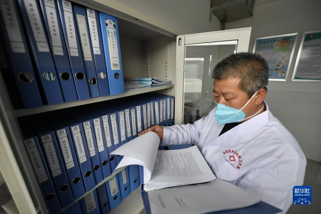 1月11日,河北省唐山市豐南區王打刁村“農村巡診小分隊”村醫孫慶良在村衛生室內整理檔案。
