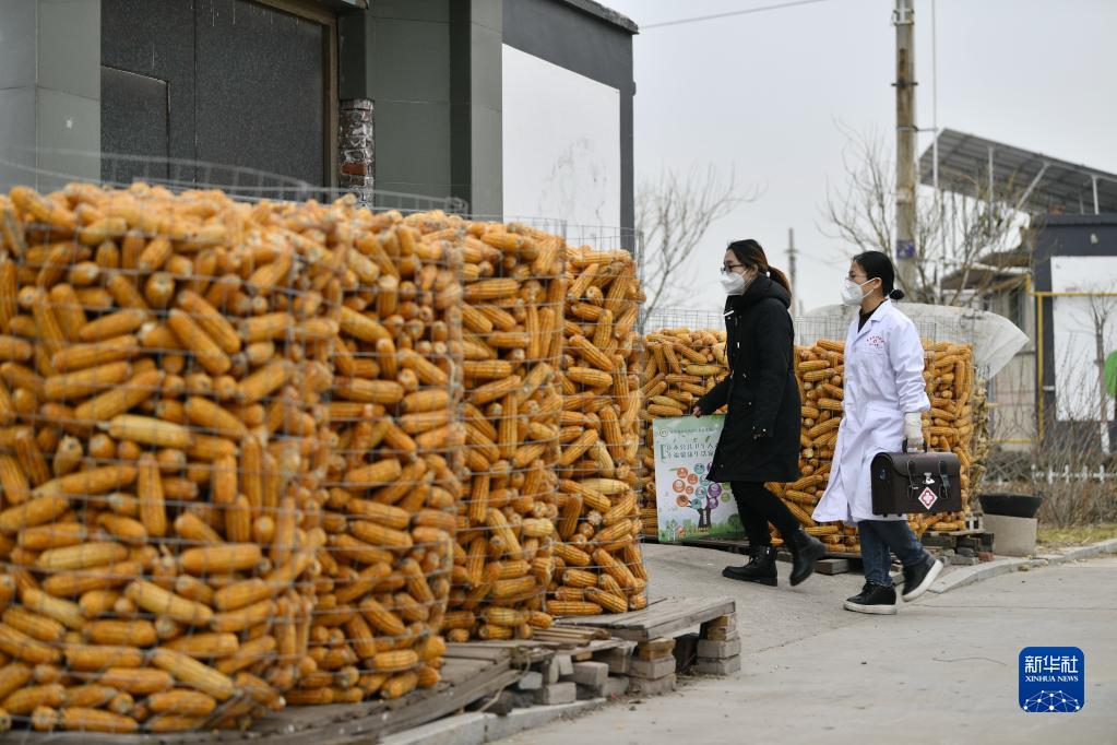 1月11日,河北省唐山市豐南區嶺子上村“農村巡診小分隊”村醫董秀芹(右)和網格員楊順利為村民上門服務。