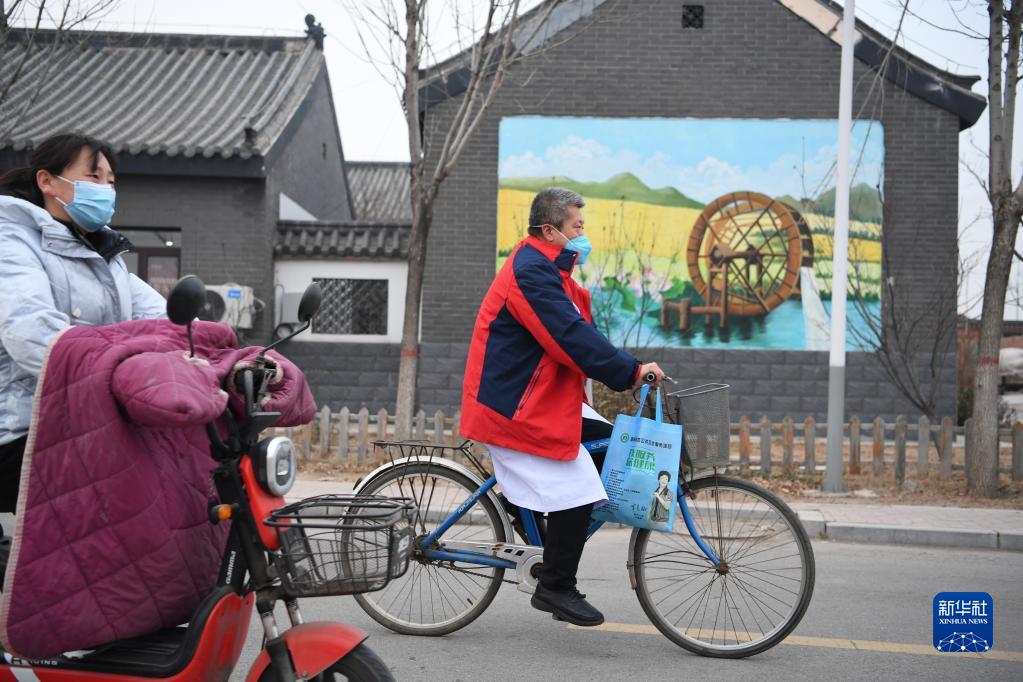 1月11日,河北省唐山市豐南區王打刁村“農村巡診小分隊”村醫孫慶良(右)和網格員孫秋愛在巡診途中。