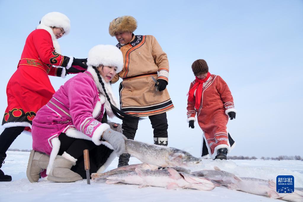 赫哲族是我國人口較少民族之一,世居黑龍江、烏蘇里江、松花江流域,因地處祖國東方,被稱為“守望太陽的民族”。春節臨近,在赫哲族聚居區之一黑龍江省撫遠市,一些赫哲族群眾開展冰湖冬捕、雪地“頂杠”、“魚王角力”等活動,展現赫哲族的傳統民俗。