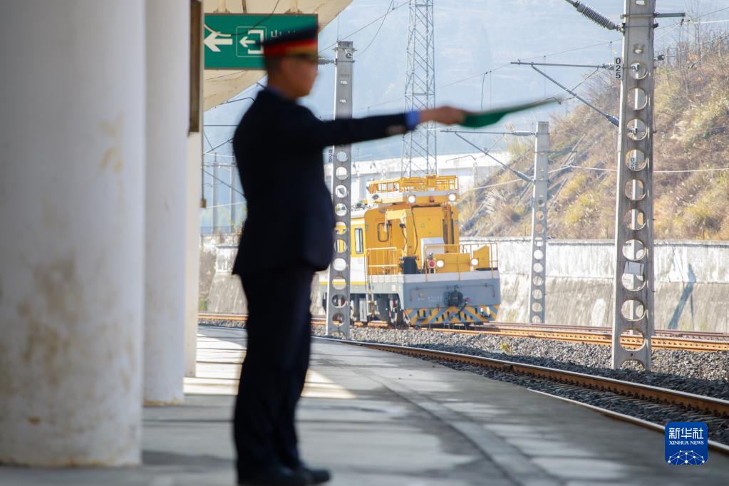 毛忠輝在大田壩車站內接發列車(1月11日攝)。