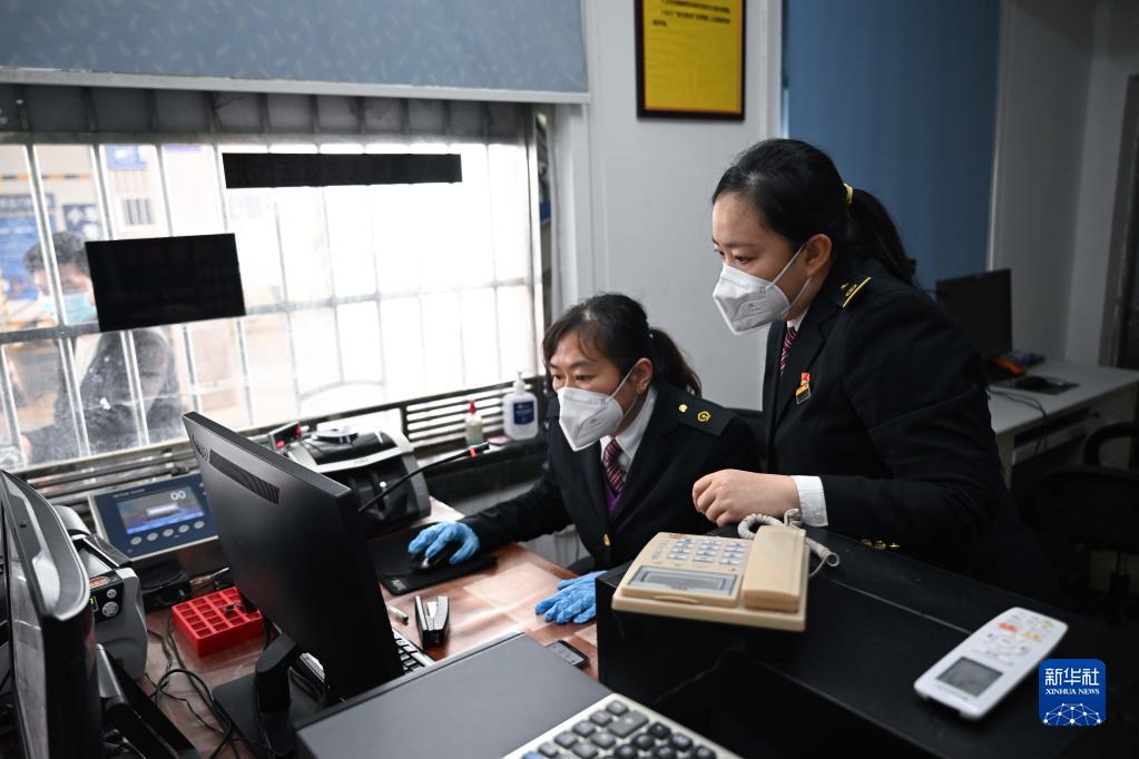 在??诘幕浐hF路輪渡南港碼頭售票處,伍琳(右)和同事討論業務(1月9日攝)。