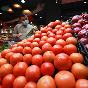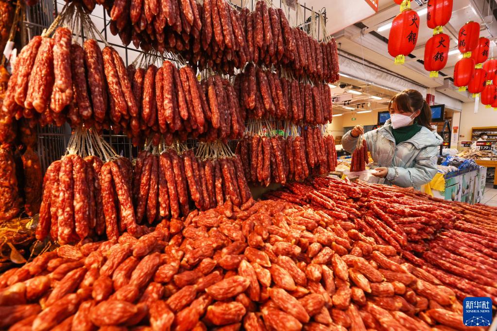 1月12日,市民在貴州省畢節市七星關區一家超市購買臘制品。