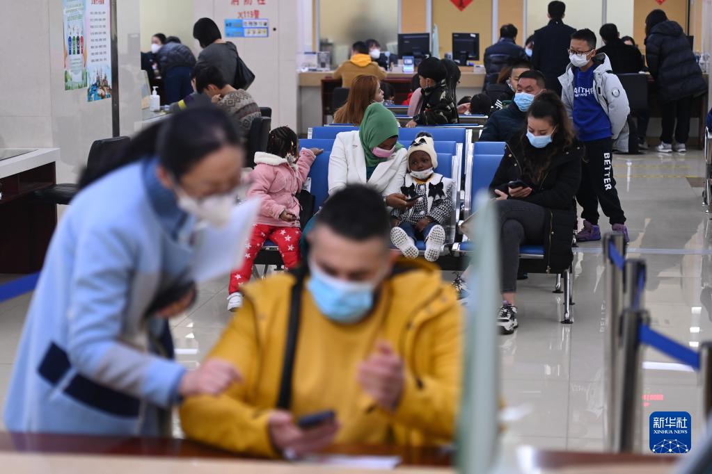 1月11日,外國客商在義烏市公安局出入境管理局辦事大廳辦理業務。