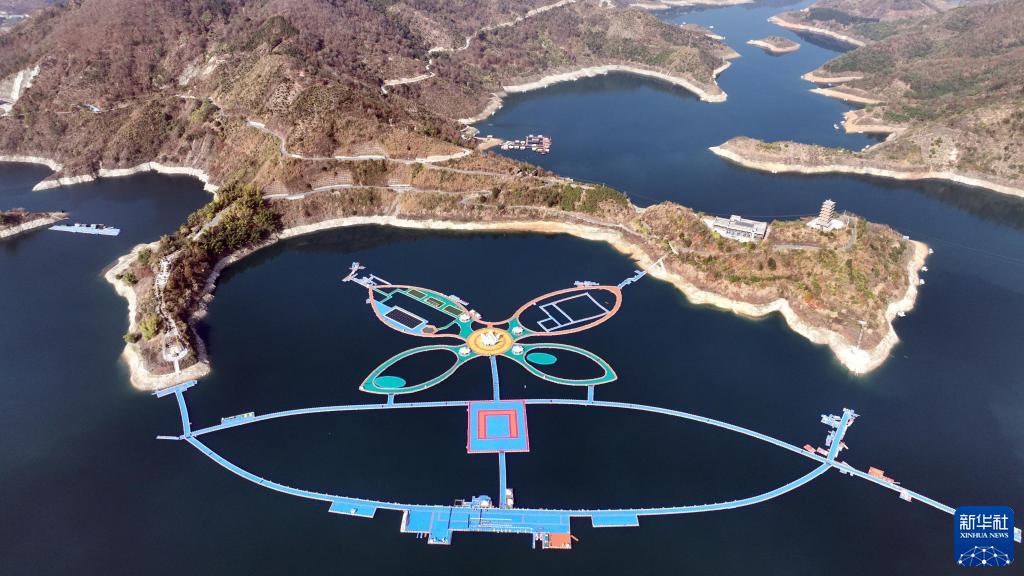 1月12日拍攝的貴州省羅甸縣紅水河畔的浮橋(無人機照片)。