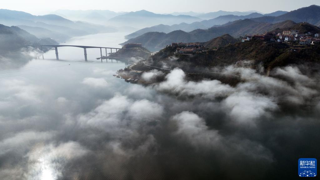 冬日,貴州省羅甸縣紅水河畔山巒起伏,云纏霧繞,景色如畫。