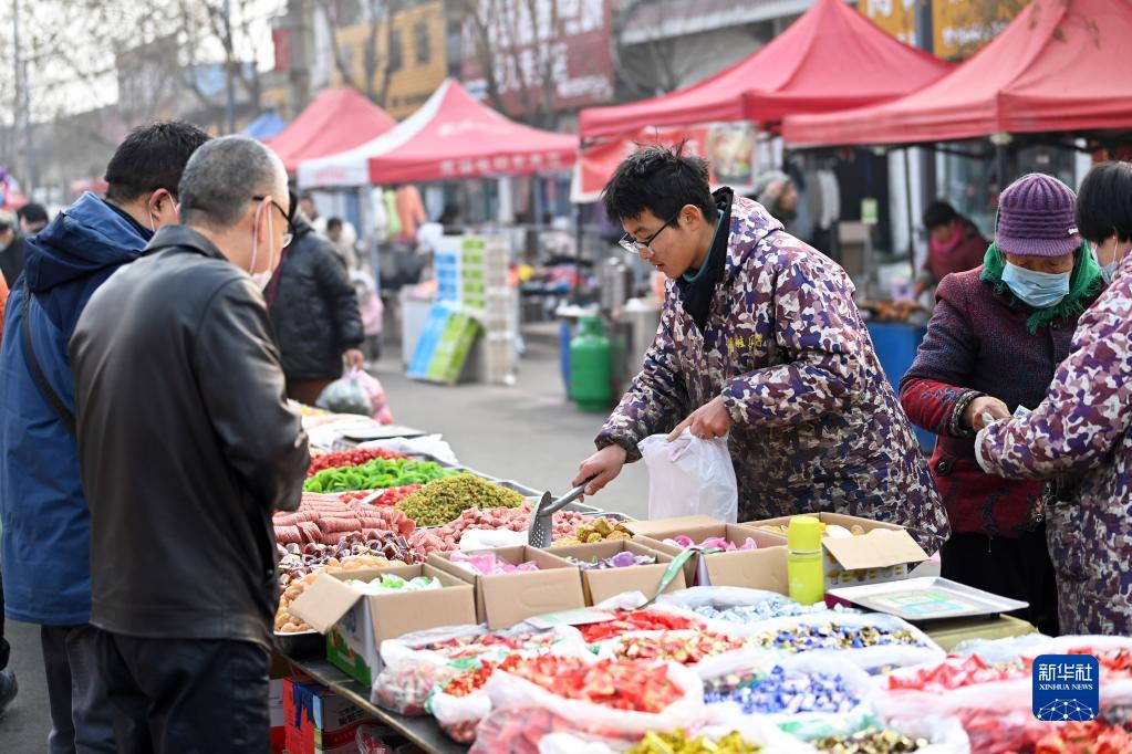 春節臨近,年味漸濃。在山西省運城市鹽湖區金井鄉的年集上,不少周邊地區的村民前來采辦年貨,迎接新春的到來。