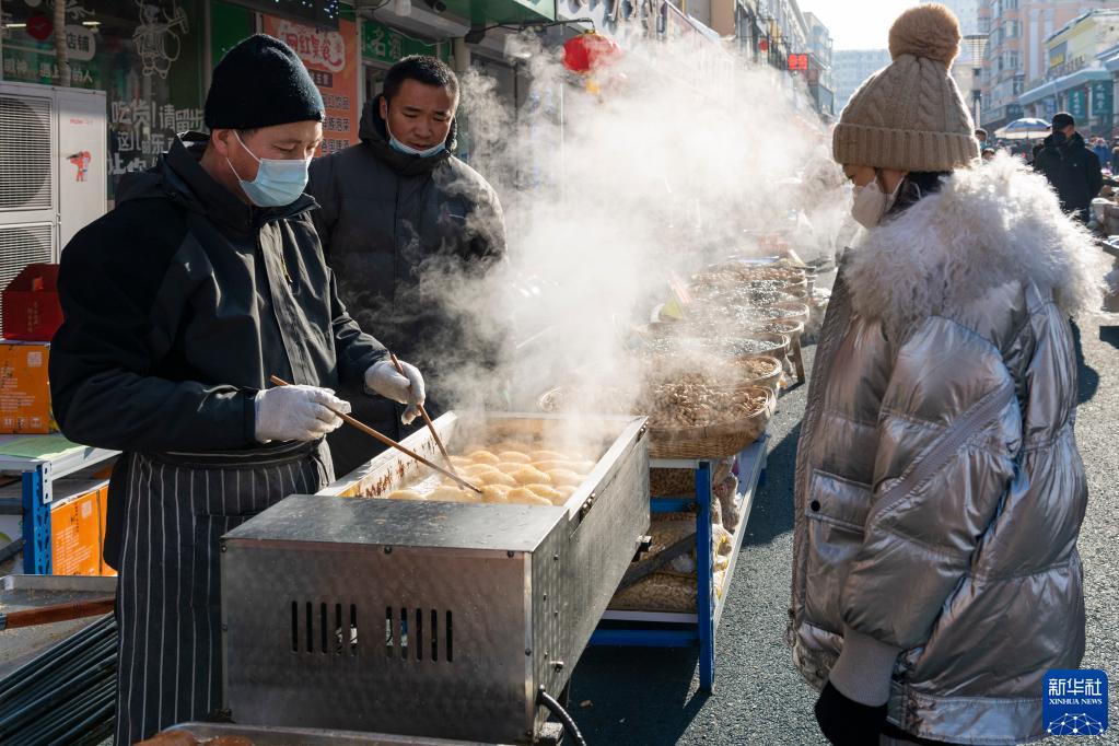 春節臨近,黑龍江省綏芬河市龍須溝步行街的年貨大集十分熱鬧。不少市民前來選購年貨,迎接新春的到來。