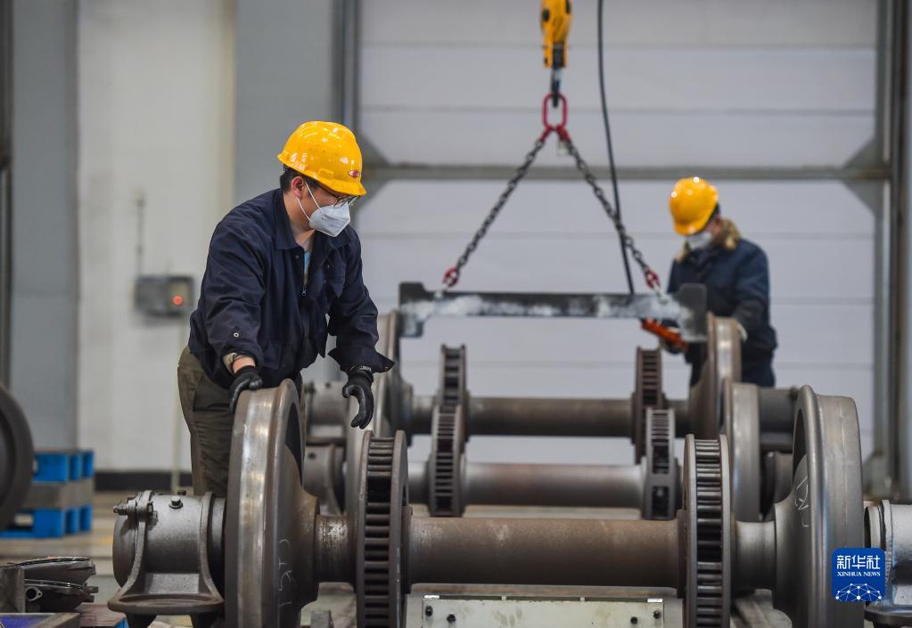 1月12日,工作人員在包頭車輛段檢修車間輪軸檢修間進行檢修作業。