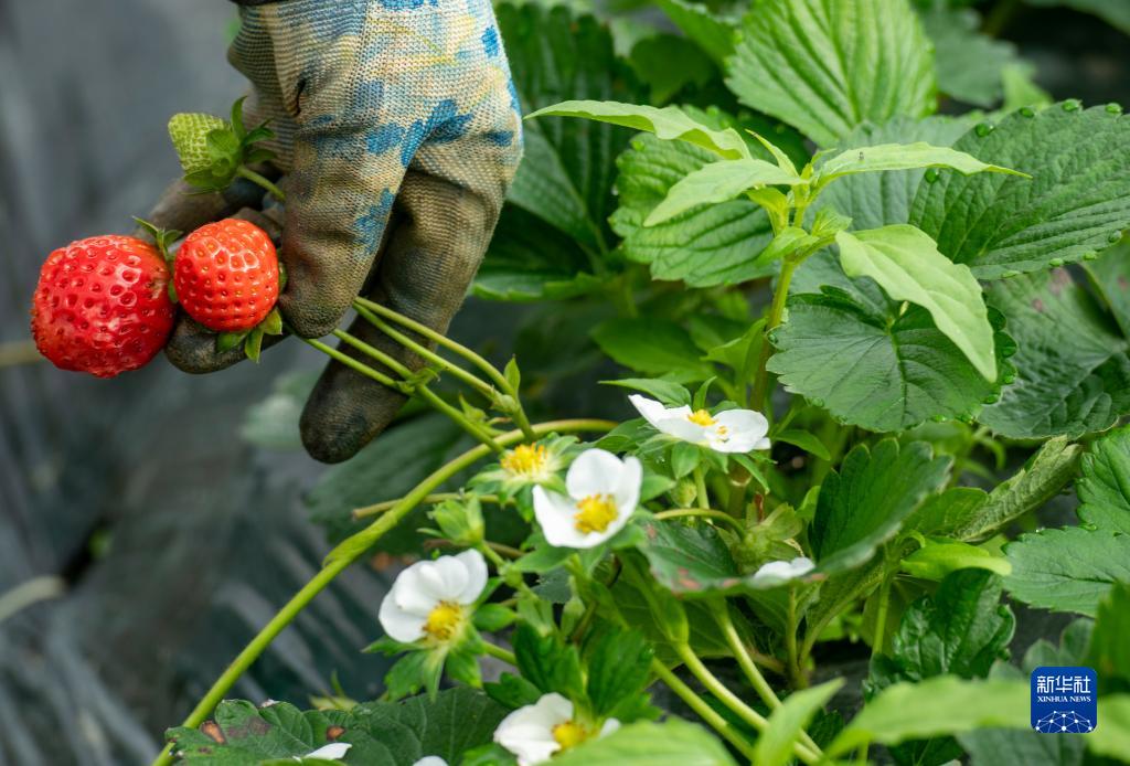 近日,在海南省瓊海市,草莓陸續成熟。農民搶抓農時忙采摘,以供應節日市場。