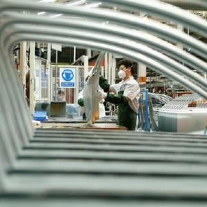 1月12日,山東省青島市即墨區一家汽車制造企業的工人在生產車門。