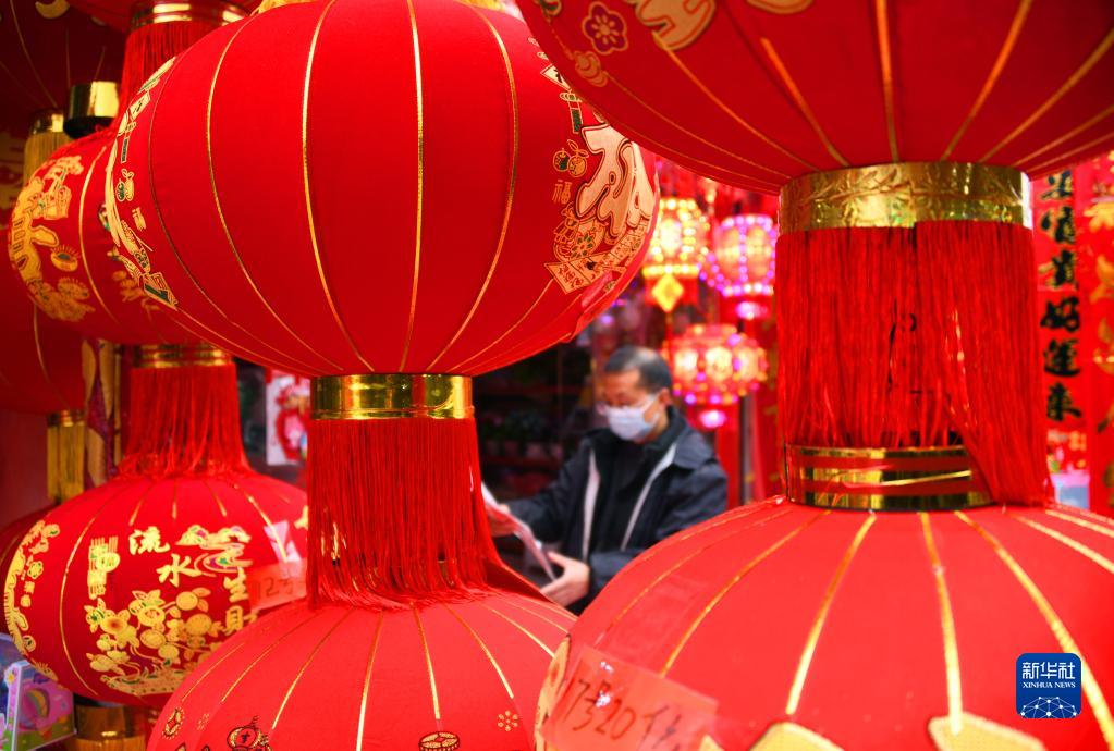 1月12日,人們在湖北省恩施土家族苗族自治州宣恩縣珠山鎮選購新春飾品。
